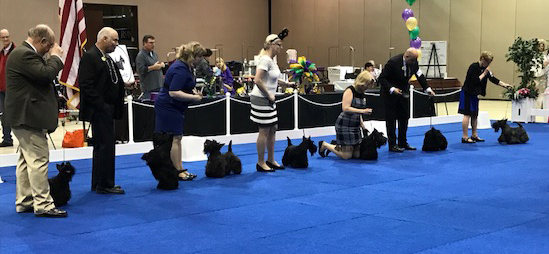 When at small shows, you often have a hard time following even the best of judges. Any judge has particular features that he or she is looking for in a Scottie. Often, they look for defects that plagued their breeding lines or at issues that they found hard to correct. Or features like size or substance that they require to put up a dog. The judge needs to pick from what is put in front of him/her. With low numbers, the judge may “settle” on a particular dog rather than pick the dog he/she wants. Looking at the placement of any class may look like a mixture of types and styles. And it often is. Each class may present a new list of lessor evils to pick from.