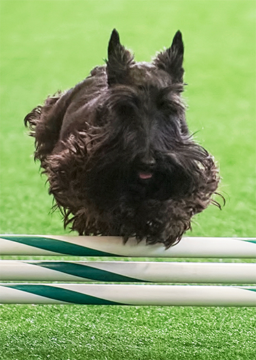 The goal of agility is for you and your Scottie to navigate a numbered series of obstacles so that dog and handler run the course without any mistakes and in the shortest period of time. The handler generally is running along with the dog issuing verbal commands or hand signals to communicate which obstacle to do next. As you can imagine, agility is great for building a better relationship with your Scottie!