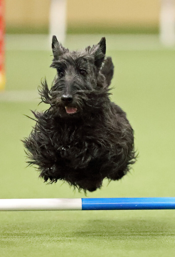 Agility could probably be considered one of the more athletic events you can do as a team with your Scottie. It is also probably one of the most popular dog sports! It requires speed, skill, and coordination between the dog and handler. In an agility trial, your Scottie would demonstrate its agile nature and versatility by following cues from the handler (a.k.a. you) through a timed obstacle course of jumps, tunnels, weave poles, and other obstacles. The closest equivalent sport would be the equestrian jumping events.